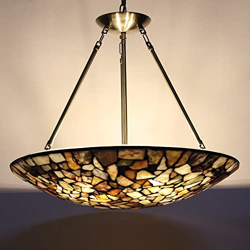 kroger ARTZONE Tiffany Pendant Light Fixtures 24 Inch Wide Natural Stone Inverted Hanging Lamp 3 Light Vintage Style Ceiling Pendant for Dining Room and Living Room